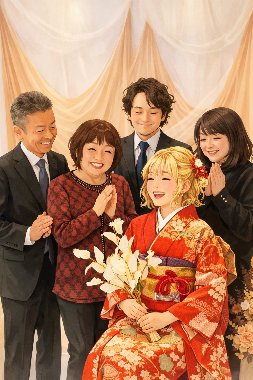 二十歳の晴れ姿を、家族の笑顔とともに。カウチーモの成人のつどい和装お仕度