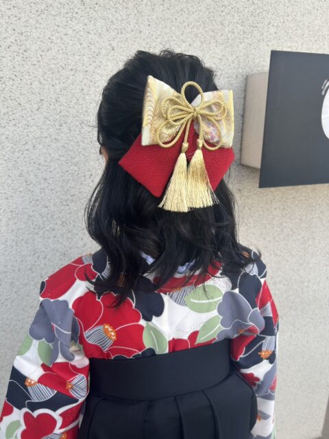今回のような大きめのリボン飾りは、後ろ姿の存在感が増し、卒業式ならではの華やかさを演出するのにぴったりです。