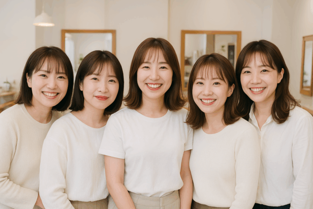 このスタイルのポイントは「ツヤ」と「まとまり」。髪が健康的に見えるだけで、全体の印象がワントーン明るく見えます。カウチーモでは、お客様の髪質に合わせたケア方法をご提案し、ご自宅でのスタイリングもサポートします。