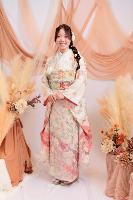 振袖・帯・ヘア・髪飾り・撮影までをトータルで準備して迎えた一日でした。
