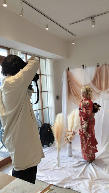 この日は、着付け直後にそのまま和装撮影をされる方もいらっしゃれば、ご家族そろって記念撮影をされる方も。