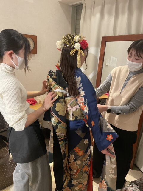 成人のつどいという人生の大切な節目に寄り添い、和装お仕度を担当しています。