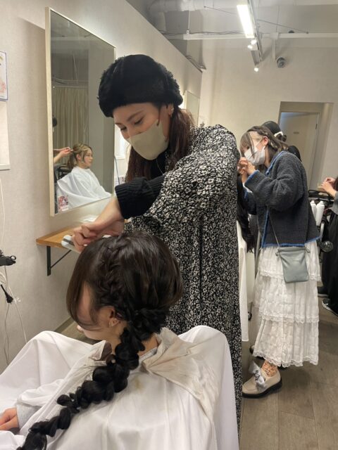 その表情を見守りながら、女性美容師たちは一手一手、心を込めてお仕度を進めます。